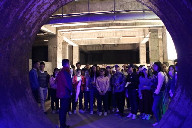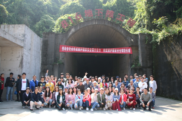 第二站来到了大业建材有限公司与816地下核工厂。同学们在大业建材了解了其概况、生产规模、供货项目、生产流程以及科技优势。特别是在混凝土的生产工艺上,其优选原材料、优化配合比、采用骨料五级配等配料技术,将生产的混凝土运送至各个领域。816地下核工厂是我国三线建设这段不能被磨灭历史的重要代表性工程。其中的工程规模和工程价值都是难以想象的,解说员带领大家参观了反应大厅、核反应堆大厅、中央主控室……其中的构造让同学们都大吃一惊,汽车通行洞、排风洞、排水沟、仓库等,洞内共有大小洞室18个,道路、指引的导洞、支洞、隧道等130多条。有的洞口高达100百多米,并在当时的技术下保留如此完整,可见当时技艺之高。