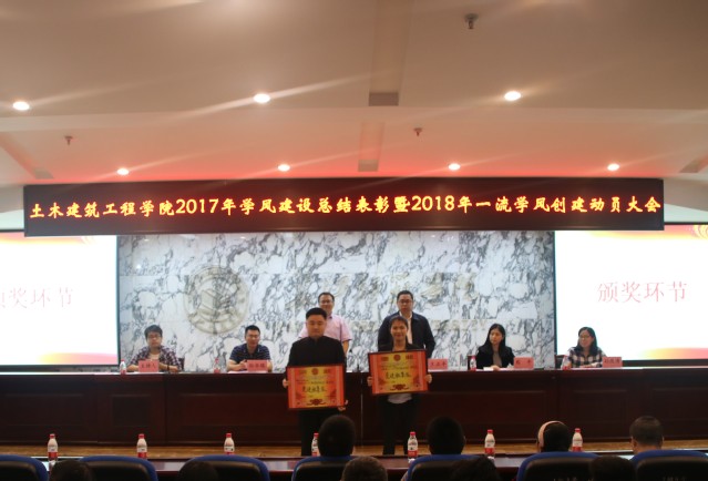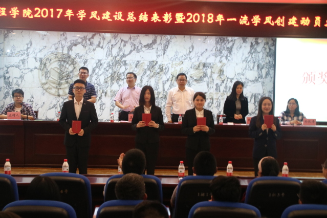 会议伊始,王东辉部长、王正平书记、孙华银副经理、熊平主任、分别宣读了2016—2017学年度校级员工先进集体和先进个人名单、2017年“三评一推”和优秀团学部门评选获奖名单、2017年项目结题、发表学术论文、新闻报道、学科竞赛获奖名单、2018年硕士研究生考试录取名单、通过2017年英语四(六)级等级考试名单,并为获奖代表颁奖。