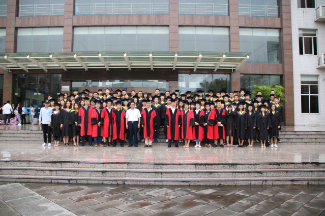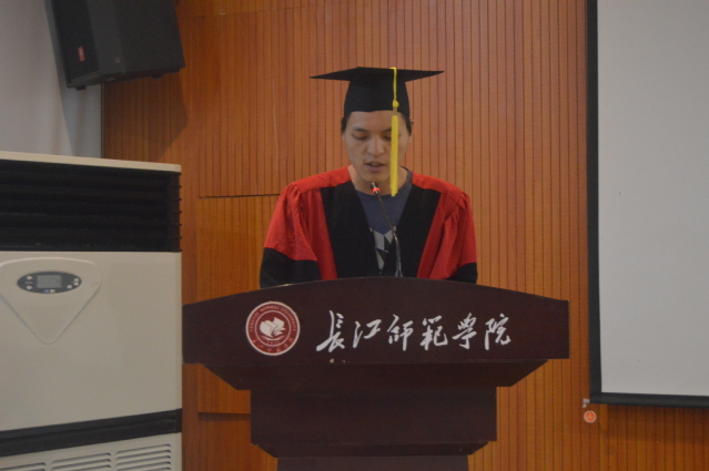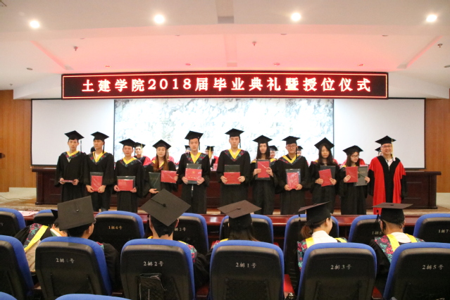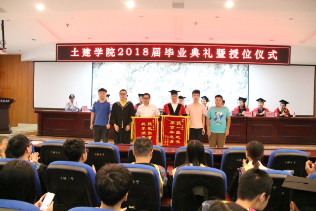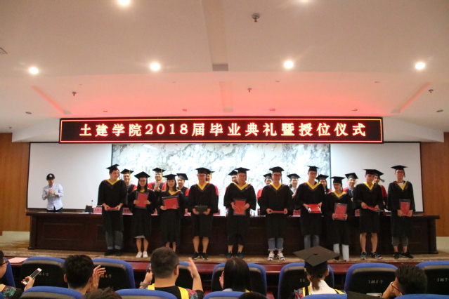 随后,学院学术委员会举行了学位授予仪式并颁发学位证书。此次,一共进行了七项为优秀毕业生代表授位。首先,公司党委副书记戴玄老师为市级优秀毕业生授位并拍照合影留念,此刻,背景音乐将典礼气氛推向了高潮。之后,学院学术委员会全体委员先后为校级优秀毕业生代表,获国奖优秀毕业生代表,考取研究生毕业生代表,获优秀毕业论文毕业生代表,自主创业毕业生代表,2018届毕业生代表授予学位。