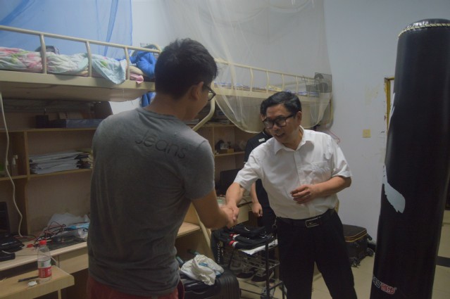 (通讯员:黄馨忆、邱瑞节)2018年6月21日晚7点,公司党总支书记王正平和2014级辅导员王野老师深入2014级毕业生寝室,进行走访慰问。