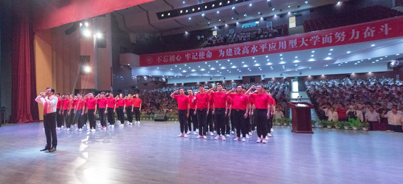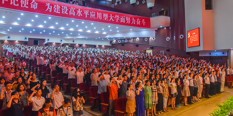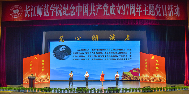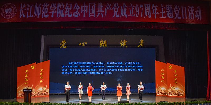 6月29日下午,在建党97周年前夕,学校在拏云员工活动中心隆重举行庆祝中国共产党成立97周年“党心朗读者”主题党日活动。学校党委常委成员集体登台领头朗读,1500余名党员同志一起接受党性洗礼并重温入党誓词,共同献礼党的97周年华诞。