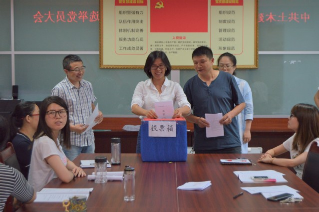 接下来,由袁士才同志宣读总支新一届委员会委员候选人预备人选名单(按姓氏笔画为序),分别为:王正平、文桃、孙华银、刘晓媛、陈乔、周琴、彭甜媛。全体党员举手表决,一致通过该候选人名单。随后,由陈乔同志宣读大会选举办法(草案),由王野同志宣读大会监票人、计票人名单,监票人为赵成功、张帆,计票人为戴凤娟。全体党员举手表决,一致通过。