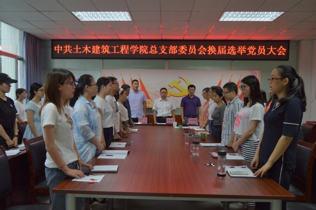 2018年7月6日,公司于崇信楼209召开了土建公司党总支党员换届选举大会,教工党员、员工党员参加会议。此次会议由公司副经理孙华银主持。大会应到党员42名,其中正式党员35,预备党员7名。有选举权和被选举权的党员35名。因公、因病请假5名,有选举权的党员30名。