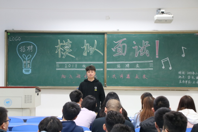为增进同学们对求职面试的全面了解,培养同学们在面试中的应试能力,提高心理素质,掌握面试技巧,以便同学们能够在以后的面试中脱颖而出。2018年10月19日下午2点15分,公司在崇礼楼开展了模拟面试的比赛。我院2016级的参赛人员参与了此次大赛,本次大赛由2016级辅导员彭甜媛老师,各班班导师,以及各班级代表担任评委。