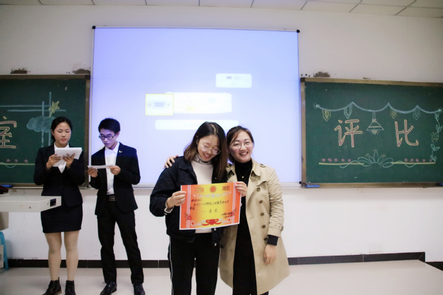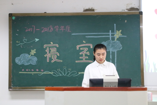 在主持人焦叶荣、刘薇的主持下,评选活动井然有序地开展。参赛小组通过抽签决定PPT的讲解顺序。在PPT的讲解过程中,参赛同学基本上从成员介绍、素质拓展、学习情况和未来目标四个方面对各自参赛寝室进行了介绍。参赛同学围绕“文明优秀寝室”的主题讲解PPT内容,且内容充实,讲述条理清晰,有系统性和逻辑性,思路清晰。尤其是其中一位参赛女生在评比活动中讲解到,她及其室友将寝室取名为“圆梦园”。其内涵不仅仅只是一种寝室文化,更是在告诫自己不忘初心。所有参赛同学内容讲解结束后,由各评委从紧扣内容、重点突出、PPT生动、表达清晰、仪态端庄、时间把握六个方面对各寝室评分。经过最终的评分汇总,共计有6间寝室获奖。他们分别是获得一等奖的北七621寝室,获得二等奖的北十一613寝室、北十一624寝室,获得三等奖的北二404寝室、北七617寝室以及北二208寝室。