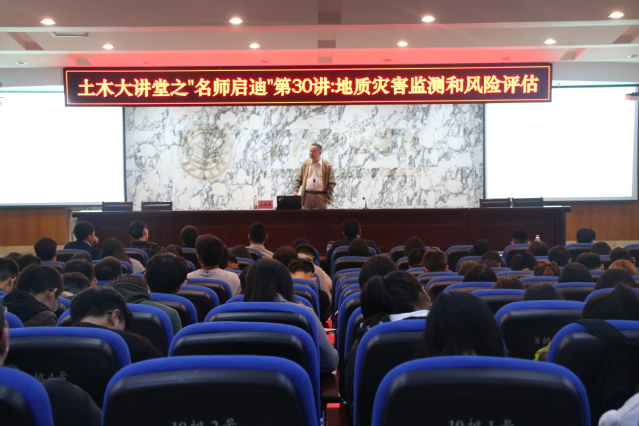 为了让同学们深入了解地灾监测是科学技术前沿和社会发展的重大问题,认识现有的监测技术以及风险评估理论知识,帮助同学们在以后的实践和工作中学会运用自己的专业知识解决遇到的难题。11月4日晚7点公司在鉴湖学术报告厅举行了关于“地质灾害监测和风险评估”讲座,中科院重庆绿色智能技术研究院王鼎益教授应邀做此次讲座的主讲人。公司党总支书记王正平以及专业老师出席了此次讲座,公司2016级及2017级土木工程专业及绿色智慧环境学院大二、大三部分同学也参与了这次讲座。