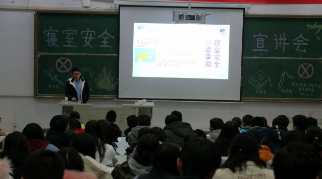 寝室是我家,寝室安全需要每个人参与。为进一步推进校园安全工作,提高同学们的寝室安全防范意识,防患于未然,避免火灾的发生,预防寝室常见安全隐患带来灾害,12月11日晚上7:00,公司在诚意楼02阶梯教室开展了寝室安全宣讲会。出席本次宣讲会的有2018级辅导员孙巧悦老师,团委员工会副主席付国训、宿管部成员以及全体大一新生参与了本次安全宣讲会。