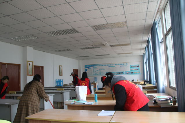 随着2015级考研工作的圆满完成,教室空空荡荡,但凌乱不堪。为了让下一届考研生有良好的学习环境,志愿者们带着清洁工具来到了考研自习室,准备开始清洁活动。他们分工有序,将所有人员分为拖地和抹桌子两部分。待到所有工作落实后,志愿者们便开始分头合作,投入到自己的工作中。志愿者们不怕脏累,卖力干活,拖地抹窗,有条不紊。由于志愿者们相互积极配合,清洁工作也进展得很快。通过扫地、擦桌子、拖地等清洁方式,志愿者们也切实地感受到考研学子在考研路上的艰辛与刻苦。正如志愿者们所说,只有走进考研自习室,才能深刻的体会到考研学子刻苦求学的精神;才能更深入的了解到考研的苦难与艰辛。