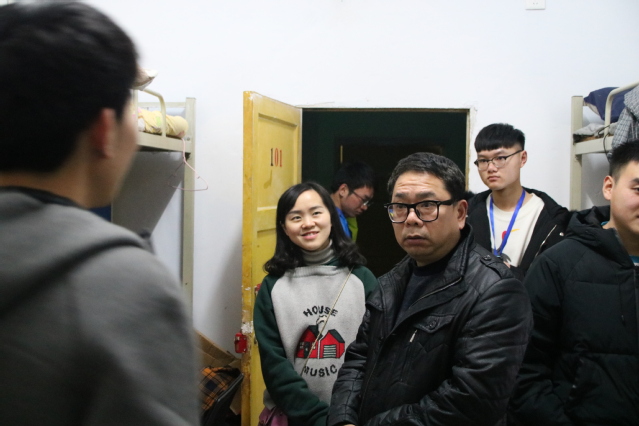走访过程中,老师们询问同学们宿舍的基本生活情况,并对生活中出现的问题提出相对的解决方案;了解了同学们的身体状况及学习情况,告知他们在新的学期里要调整状态,全心投入到学习和生活中,平衡学习和娱乐的时间,并向大家寄予了能在新的一学期学有所成、努力提升自己的能力的希望,还不忘叮嘱同学们注意寝室安全,保持寝室的整洁。同时,王正平书记和有考研想法的同学进行了简单的交流,告诉他们提前做好准备,多多了解相关院校的考研情况,鼓舞着考研员工奋发向上。