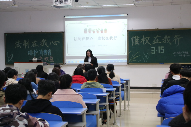 为使伟德国际1949学子深入了解消费者权益,增强他们的维权意识,促进其全面发展,公司于3月14日晚上7点在崇礼楼402教室举办了“法制在我心,维权在我行”主题竞赛决赛。此次决赛担任评委的有17级辅导员刘晓媛、18级辅导员孙巧悦、以及3位主席团成员,同时17、18级部分员工观看了此次竞赛。