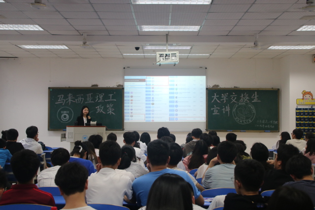 为了让同学们深入了解去马来西亚理科大学交换学习的相关事宜,激发更多同学对留学学习的兴趣,4月9日和10日晚上,公司在崇礼楼405教室召开了去马来西亚理科大学交换生政策宣讲会。此次宣讲会邀请到了马来西亚理科大学交换生项目老师甘园萍,2017级和2018级辅导员老师刘晓媛、孙巧悦和2017级、2018级多数同学参加了本次宣讲会。