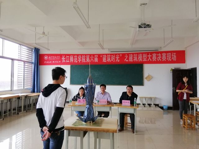 此次共有34个小组进入决赛答辩环节,其中专业组有24支队伍,非专业组有10支队伍。答辩环节中,各小组派一名成员介绍其作品的亮点、讲解其模型创作的灵感以及在制作过程中所碰到的技术难关。答辩限时3分钟,小组成员介绍模型后,由各位评委老师根据具体讲解情况提出2-4个问题,如:模型主体结构部分使用了哪些结构、如何考虑模型的受力及稳定性问题、在最初的材料选择过程中,怎样满足既经济环保又简约优雅的要求等,该组成员将自由对各位评委老师的提出的问题进行回答。
