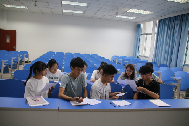 无领导小组讨论于6月24日下午在崇礼楼402、404至408教室进行。参加讨论的同学分小组在对应教室接受考核,他们有5分钟时间读题,构思发言提纲,然后在20分钟的时间里,小组成员对问题进行讨论并对问题结果达成一致共识,最后选派一名代表在5分钟之内向评委汇报讨论情况和结果。在此期间,各评委通过选手们讨论问题过程中的表现以及最后的汇报情况为每位选手打分。在个人答辩环节,每位同学就自己的观点展开阐述,条理清晰,言简意赅,充分展现了他们较强的逻辑思维能力。激烈的讨论中,每个小组成员间的观点在碰撞中相融合,达成统一,整个过程进行得有条不紊。