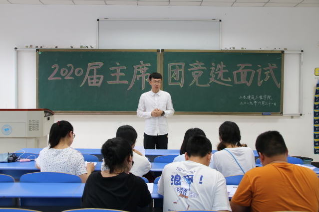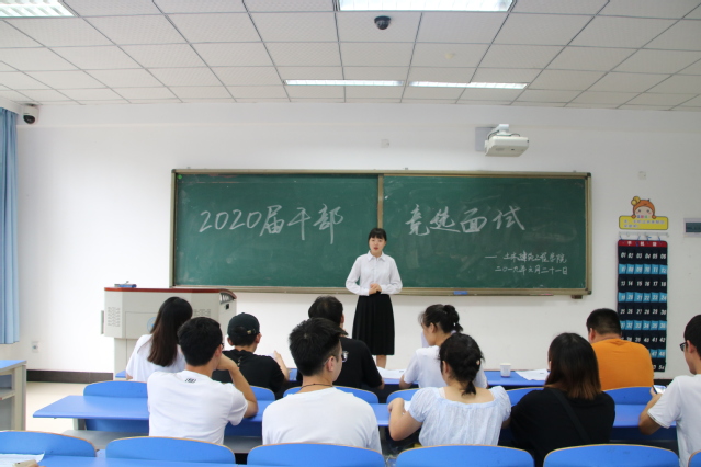 6月21日下午公司于崇礼楼102、104、106、108、109教室进行了现场面试。团委员工会主席团的面试由公司员工工作办公室主任彭甜媛、2017级辅导员刘晓媛、2018级辅导员孙巧悦及2019届主席团成员担任评委。各部门干部的竞选面试评委由未参加此次竞聘的2019届团学部长、副部长担任。