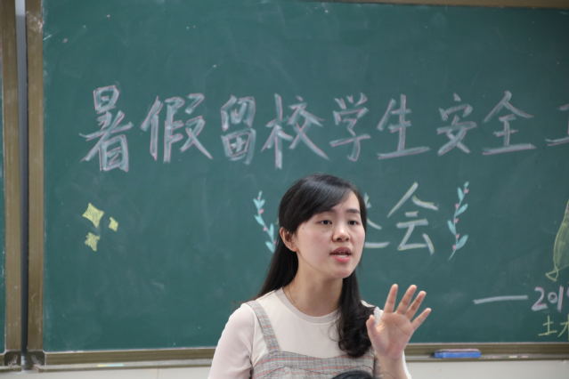 会上,彭甜媛主任首先向大家传达了暑假员工寝室热水器改造施工情况,她提醒大家在离校前妥善保管和处置好个人物品,带走贵重物品,避免造成不必要的财产损失。彭甜媛主任还强调同学们在留校期间尽量不要一个人在寝室,加强自我保护意识。做好学习规划,充分利用好假期时间好好学习。