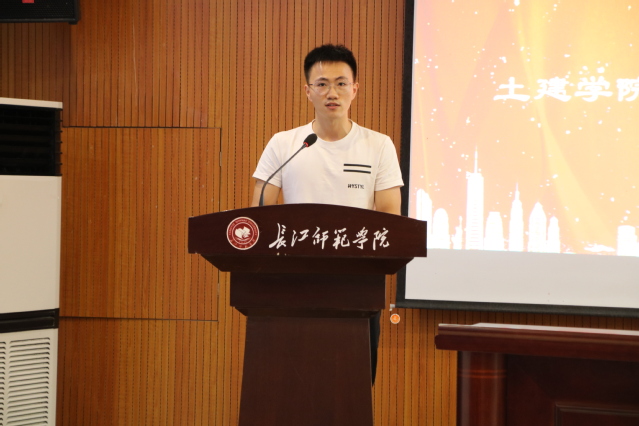 优秀老生代表倪伟淋用四个“关注”分享了自身的经验,他说,来到长师后,希望学弟学妹们转换学习角色,关注学习、关注生活、关注考证、关注梦想,坚决不做“佛系”老员工,宅在宿舍,以外卖为生,与“开黑”和“吃鸡”为伴。图书馆、自习室、实验室才是大家应该常去的地方。