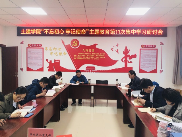 11月5日下午16:20,土建公司党总支在至静楼504会议室召开土建学院“不忘初心、牢记使命”主题教育第十一次集中学习研讨会。本次集中学习研讨会由土建公司党总支书记王正平主持,学院领导、部门负责人和党总支委员、党支部书记、党支部委员参加了会议。