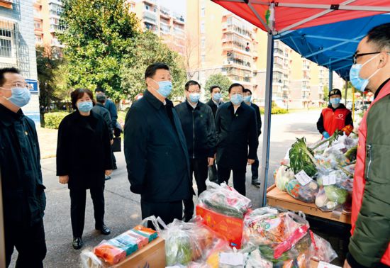2020年3月10日,中共中央总书记、国家主席、中央军委主席习近平专门赴湖北省武汉市考察新冠肺炎疫情防控工作。这是习近平在东湖新城社区生活物资集中配送点,详细询问社区群众生活物资采购和供应情况。 新华社记者 谢环驰/摄 第四,保障好群众基本生活。民生稳,人心就稳,社会就稳。湖北和武汉等疫情严重地方的群众自我隔离了这么长时间,有些情绪宣泄,要理解、宽容、包容,继续加大各方面工作力度。要充分考虑群众基本生活需求,密切监测市场供需和价格动态,保障米面粮油、肉禽蛋奶等生活必需品供应,畅通“最后一公里”。武汉人喜欢吃活鱼,在条件允许的情况下要多组织供应。对因疫情防控在家隔离的孤寡老人、困难儿童、特困人员、残疾人等特殊群体,要落实包保联系人,加强走访探视,及时提供必要帮助。要加强心理疏导和心理干预,尤其是要加强对患者及其家属、病亡者家属等的心理疏导工作。群众在家待得久了,社区工作者、基层干部、下沉干部等长期疲劳作战,也会产生这样那样的心理问题,要通过各种方式加大心理疏导工作力度。要加强舆论引导,强化正面宣传,及时回应社会关切,广泛普及疫情防控知识,纾解公众疑虑,营造强信心、暖人心、聚民心的舆论氛围。要坚持依法防控,加强社会面管控,妥善处理疫情防控中可能出现的各类问题,维护社会大局稳定。疫情平稳之后,有些患者特别是病亡者家属会提出一些诉求。这方面工作要抓紧研究,明确政策措施,抓紧开展工作,把安抚关怀工作落实到位。