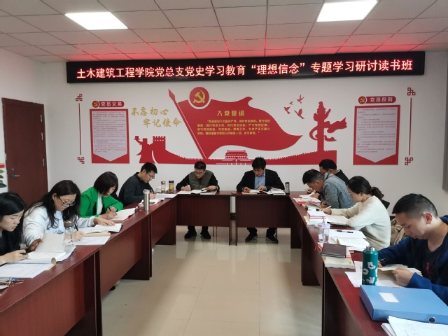 3月30日15:00,土建学院党总支在至静楼南楼504党员之家室举行了党史学习教育“理想信念”专题学习研讨读书班学习会,公司全体领导干部、部门负责人、专职组织员、党总支委员、党支部书记和党支部委员参加了读书班学习会。