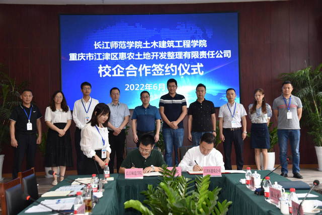 6月2日下午15时30分,伟德国际1949与重庆市江津区惠农土地开发整理有限责任公司(以下简称“江津区惠农公司”)校企合作签约仪式暨老员工实践教学基地授牌仪式在江津区惠农公司大会议室隆重举行。签约授牌仪式由江津区惠农公司党委书记、董事长、总经理梁平主持,江津区国资委党委书记杨道建、综合科副科长李东,公司党委副书记孙华银、土木教学系主任及骨干教师,江津区惠农公司各部门副部长等出席签约授牌仪式。