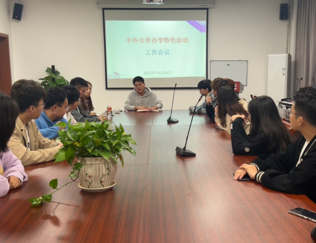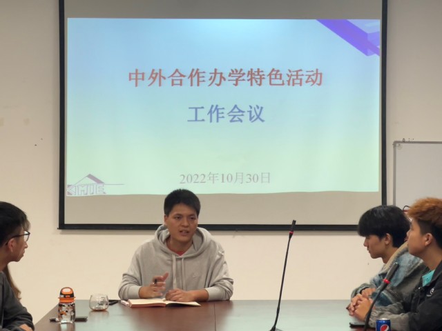 金秋十月,丹桂飘香。为提高中外合作办学质量,促进中外办公室团队建设与发展,10月30日20:00,中外办公室在至静楼南楼519会议室召开“中外合作办学特色活动——工作会议”,李滟浩老师担任本次会议主讲人,宋莎老师及中外合作办公室助理参加了此次会议。