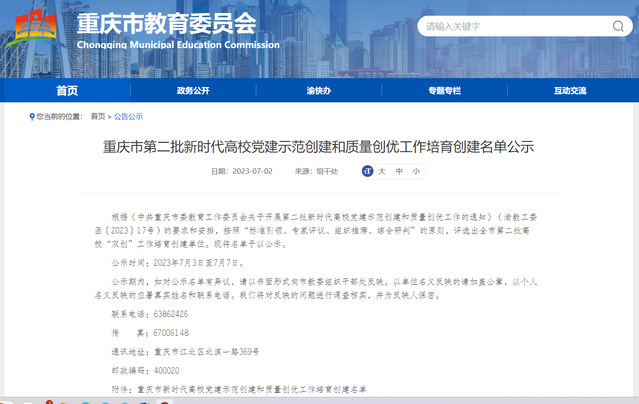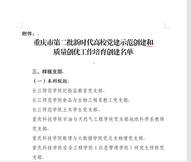 7月2日,重庆市教委发布《重庆市第二批新时代高公司党建示范创建和质量创优工作培育创建名单公示》,公司土木员工党支部成功入选“重庆市党建工作样板支部”培育创建单位。