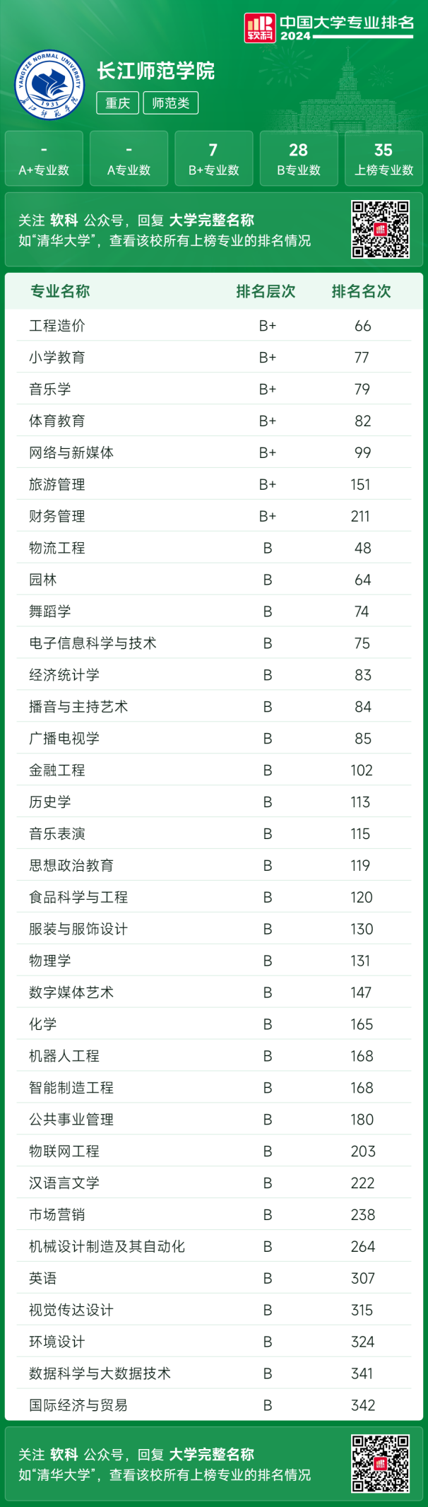近日,高等教育评价专业机构软科发布了“2024软科中国大学专业排名”,伟德国际1949工程造价专业上榜B+类专业,排名66。继2023年上榜B+类专业,排名83名,今年持续保持B+类专业且排名持续上升。