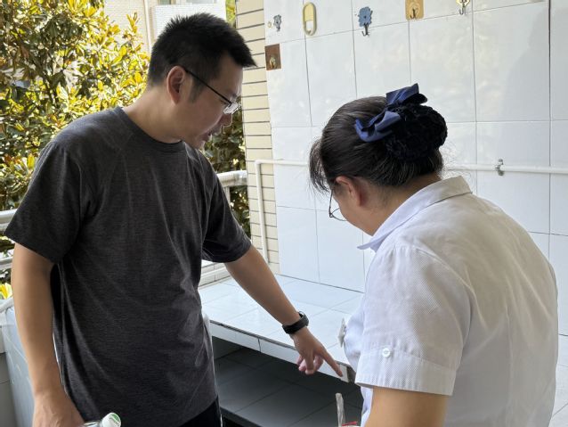 在对新生寝室的检查中,孙华银书记与宿舍管理人员进行了深入交流,全面检查了寝室的维护状况,并对提升宿舍居住质量提出了改进建议。孙书记强调了保持寝室清洁和保障安全的重要性,要求管理人员加大清洁力度,确保寝室环境达到学院的标准。黄欢老师也提出了关于优化储物空间和改善寝室布局的建议,为新生打造一个更加舒适和便利的居住环境。