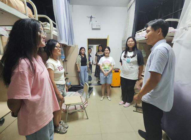 为深入了解公司2024级新生入学、入住的基本情况。9月8日晚,公司领导老师走访寝室,慰问新生。党委副书记孙华银、副经理文桃、团委副书记晏菲、2024级辅导员黄欢前往新生寝室开展查寝工作。